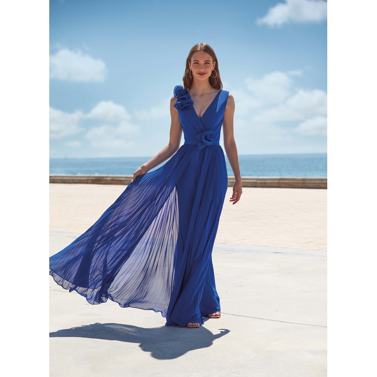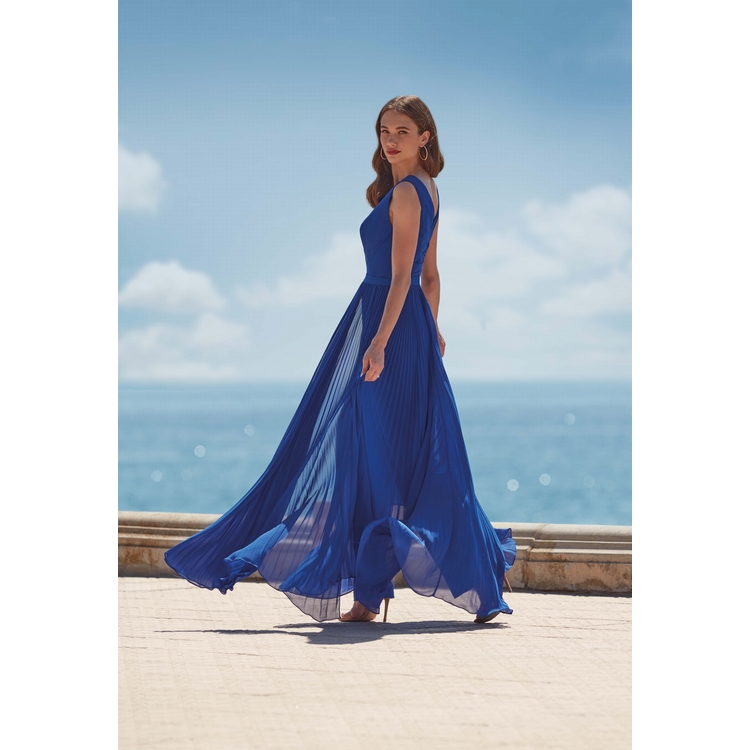 La combinaison de cocktail de la Maison Créatif séduit par son design élégant et sa mousseline fluide plissé soleil au tombé aérien. Dotée de manches longues, elle allie sophistication et confort, idéale pour les cocktails, cérémonies et soirées habillées.