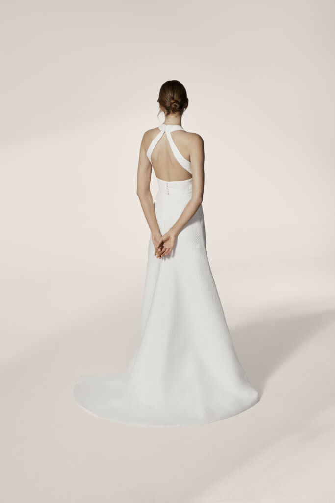 Cette robe est pensée pour les mariées qui souhaitent conjuguer sobriété, impact visuel et liberté de mouvement. La robe 2642 vous propose un décolleté profond en V et dos dégagé, pour une allure élancée et sensuelle, une coupe fourreau, qui épouse les courbes avec précision et élégance.