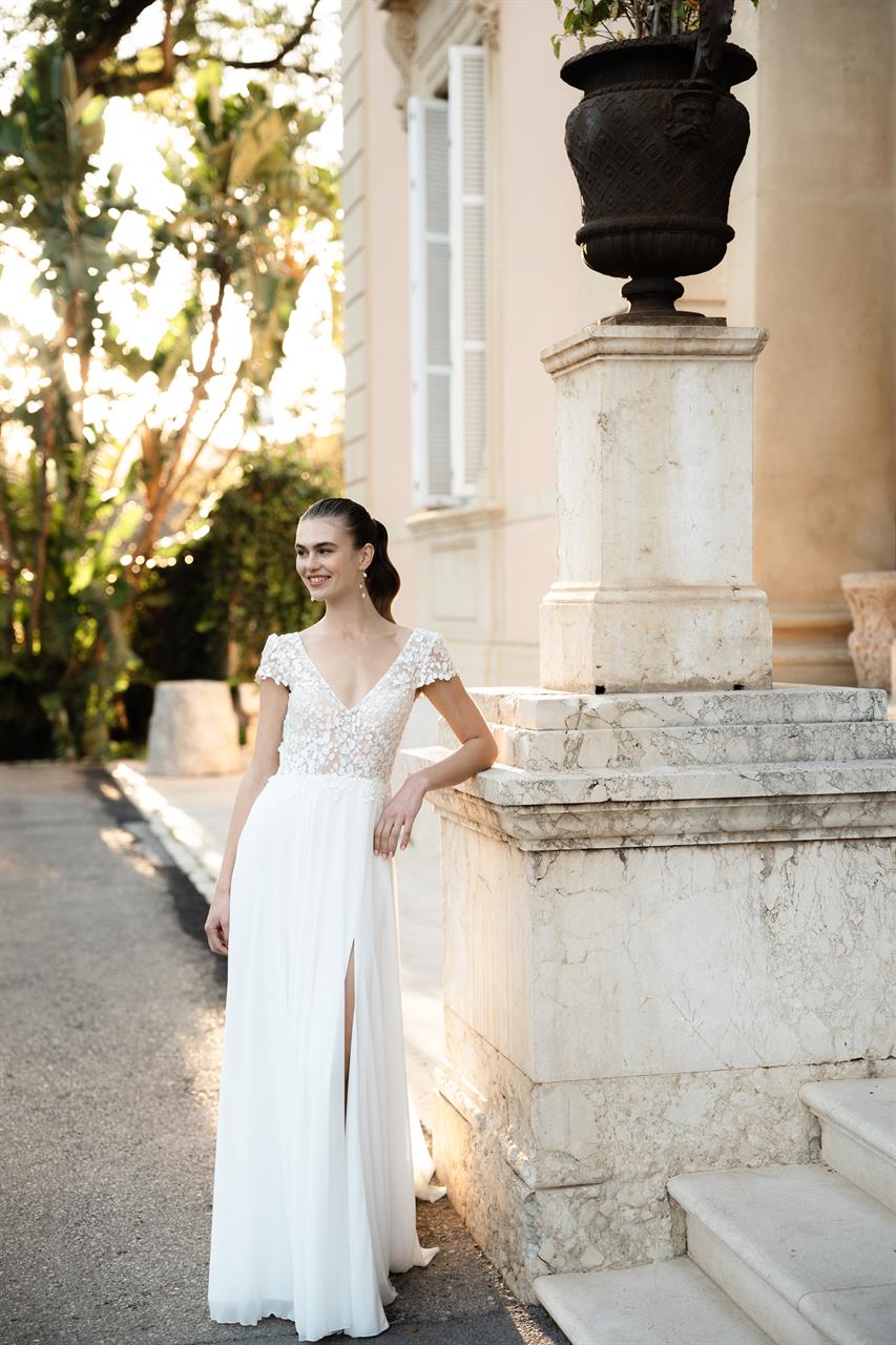 La robe Kiss from a rose illustre parfaitement l’univers de Marylise : des créations modernes, fluides et poétiques, pensées pour les mariées en quête d’une robe unique et pleine de fraîcheur.