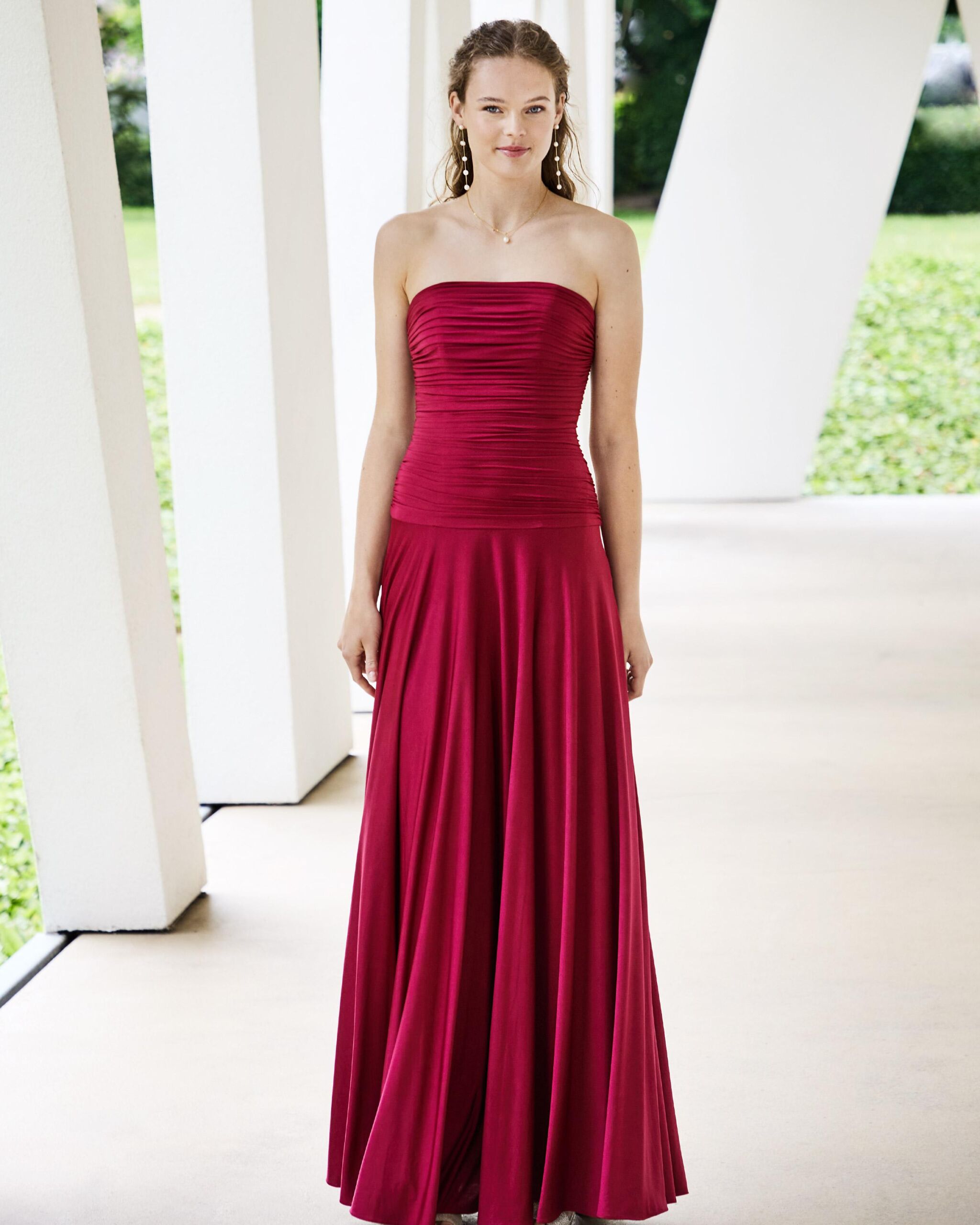 Cette robe longue de cérémonie en jersey séduit par son élégance épurée et sa coupe flatteuse. Confectionnée dans un jersey fluide et extensible, elle épouse la silhouette avec confort tout en offrant un tombé naturel et gracieux.
