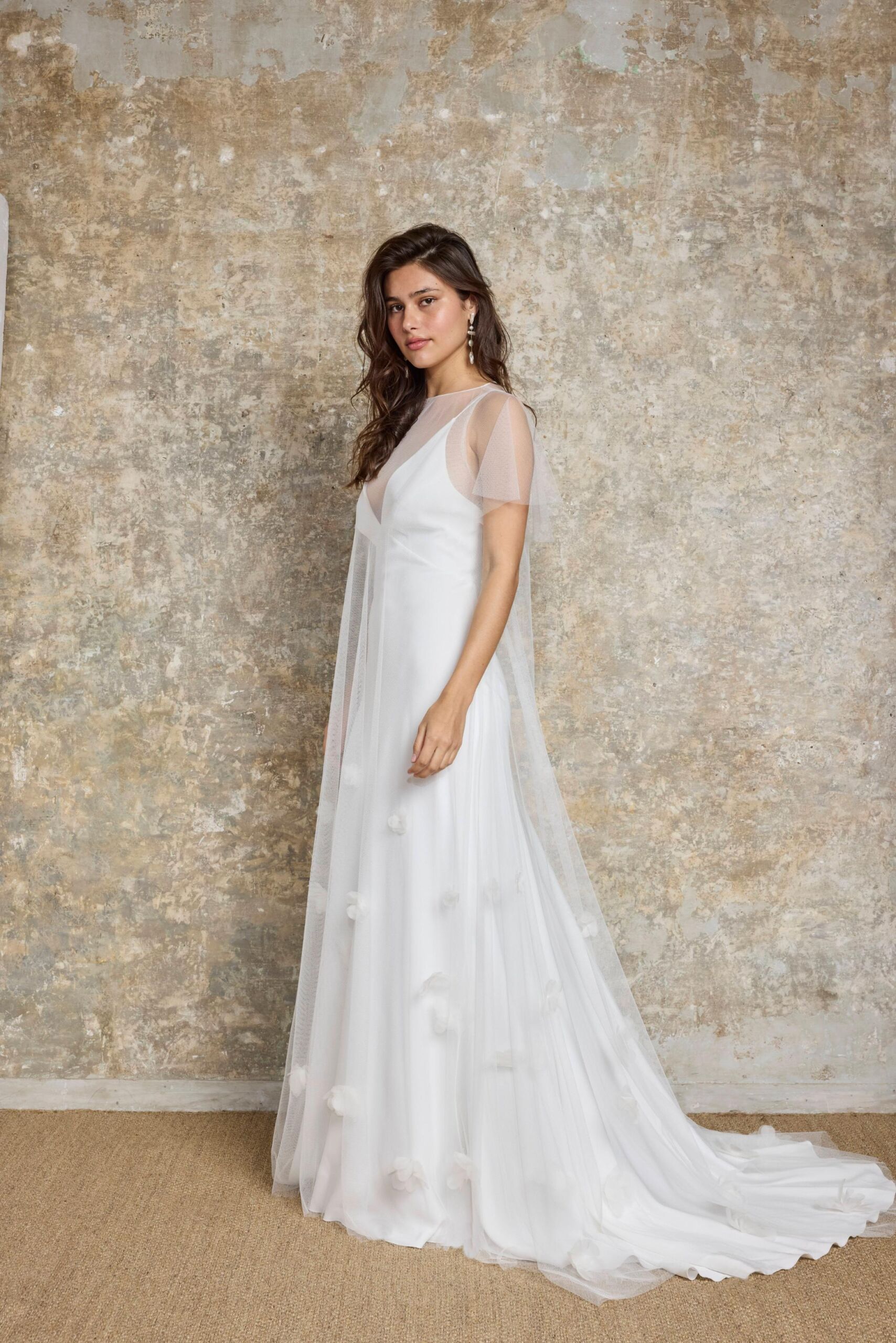 La sur robe en tulle Fleur de Lambert Création se porte sur une robe simple comme la robe Eleonore ou la robe Era. Elle séduit par son effet 2 en 1 que vous pouvez apporter à votre mariage, en composant 2 tenues différente entre la journée et lasoirée.